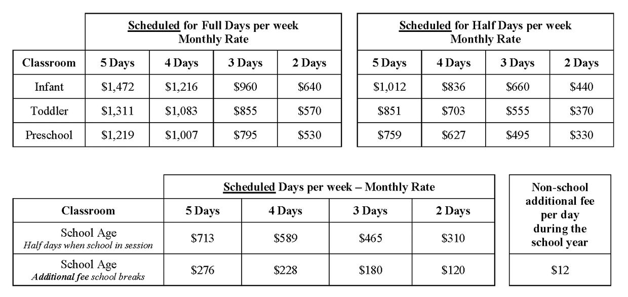 The van fee is $40.00 per month per family going to the same school at the same time September-June. If you have more than one child going to different schools or transported at different times the van fee is $40.00 per child.